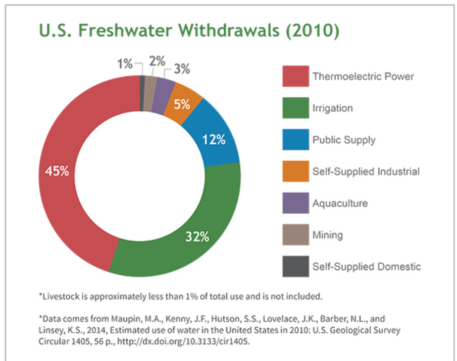 Quoting from the EPA website, “Water is used to grow our food, manufacture our favorite goods, and keep our businesses running smoothly. We also use a significant amount of water to meet the nation's energy needs.”